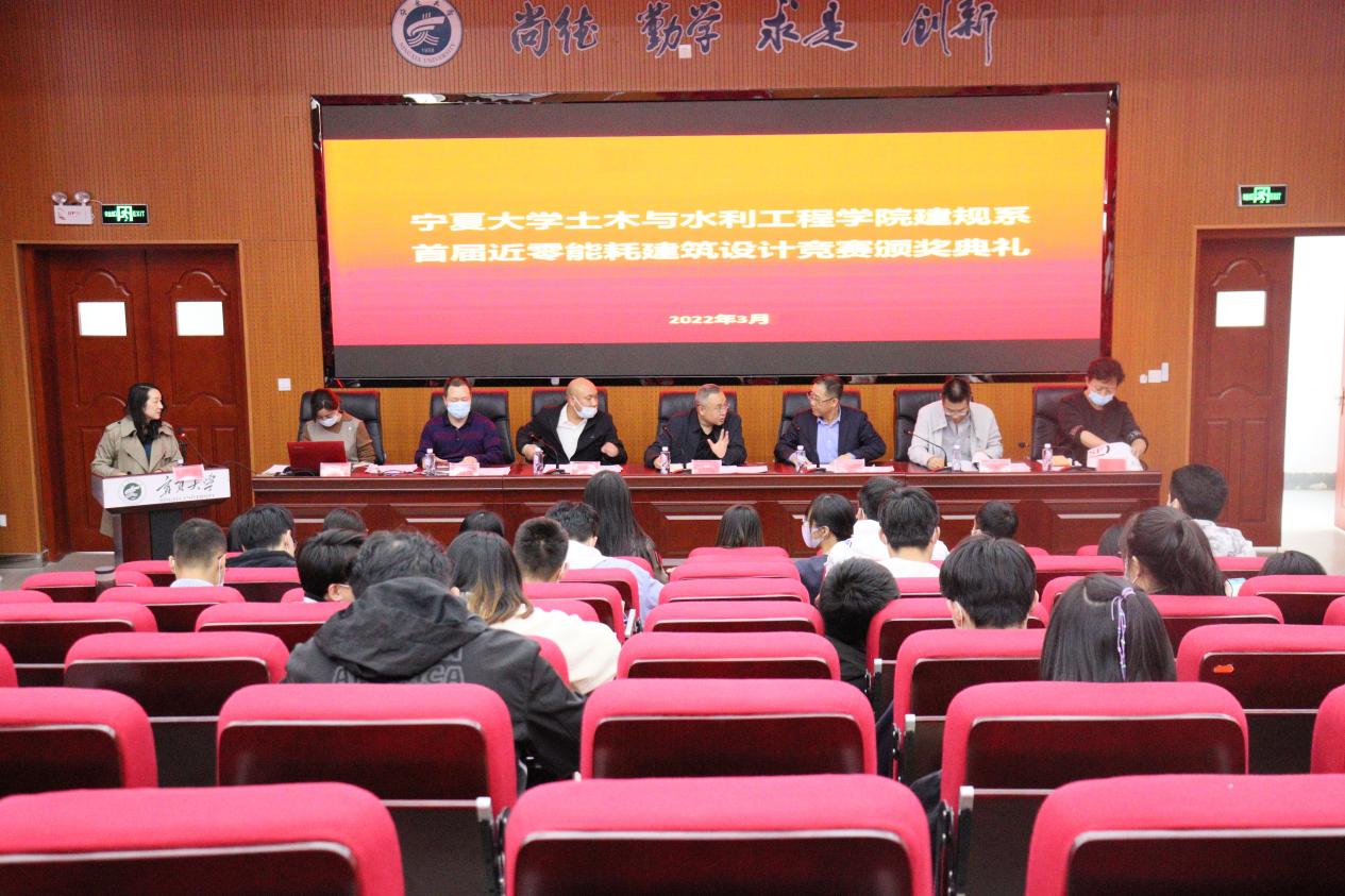 2022年3月30日下午,金沙威尼斯欢乐人城建筑与城乡规划系在在知行楼三楼阶梯教室举行“2021年金沙威尼斯欢乐人城近零能耗建筑设计竞赛”颁奖典礼。宁夏中昊银晨能源技术服务有限公司董事长陈廷敏、副总经理张孝德,金沙威尼斯欢乐人城党委书记陈晓敏、党委副书记苏宇静、副院长李王成、建筑与城乡规划系主任马冬梅,副主任徐浩出席了本次颁奖典礼。