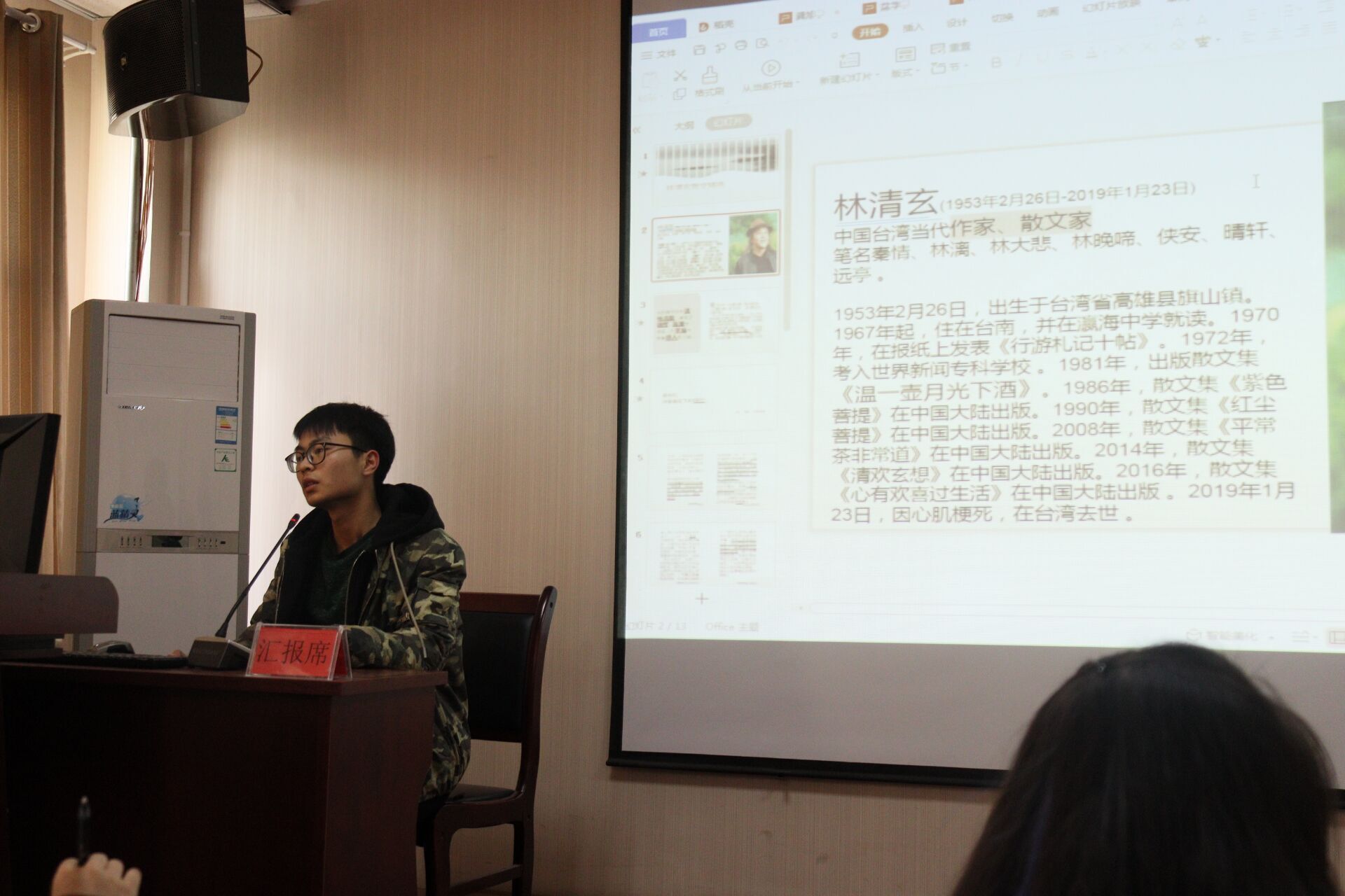龚旭栋同学和姚兰同学不约而同地选择了分享余华先生的《活着》一书,两位同学以他们各自的角度进行解读,共同引发着我们对人生的思考;林凯程同学通过分享《林清玄散文精选》,让我们清晰了解了林清玄先生的思想情怀;马龙龙同学向我们分享红色书籍《保卫延安》,带领我们回到了当时那个动荡的年代,点燃我们内心的星星之火;